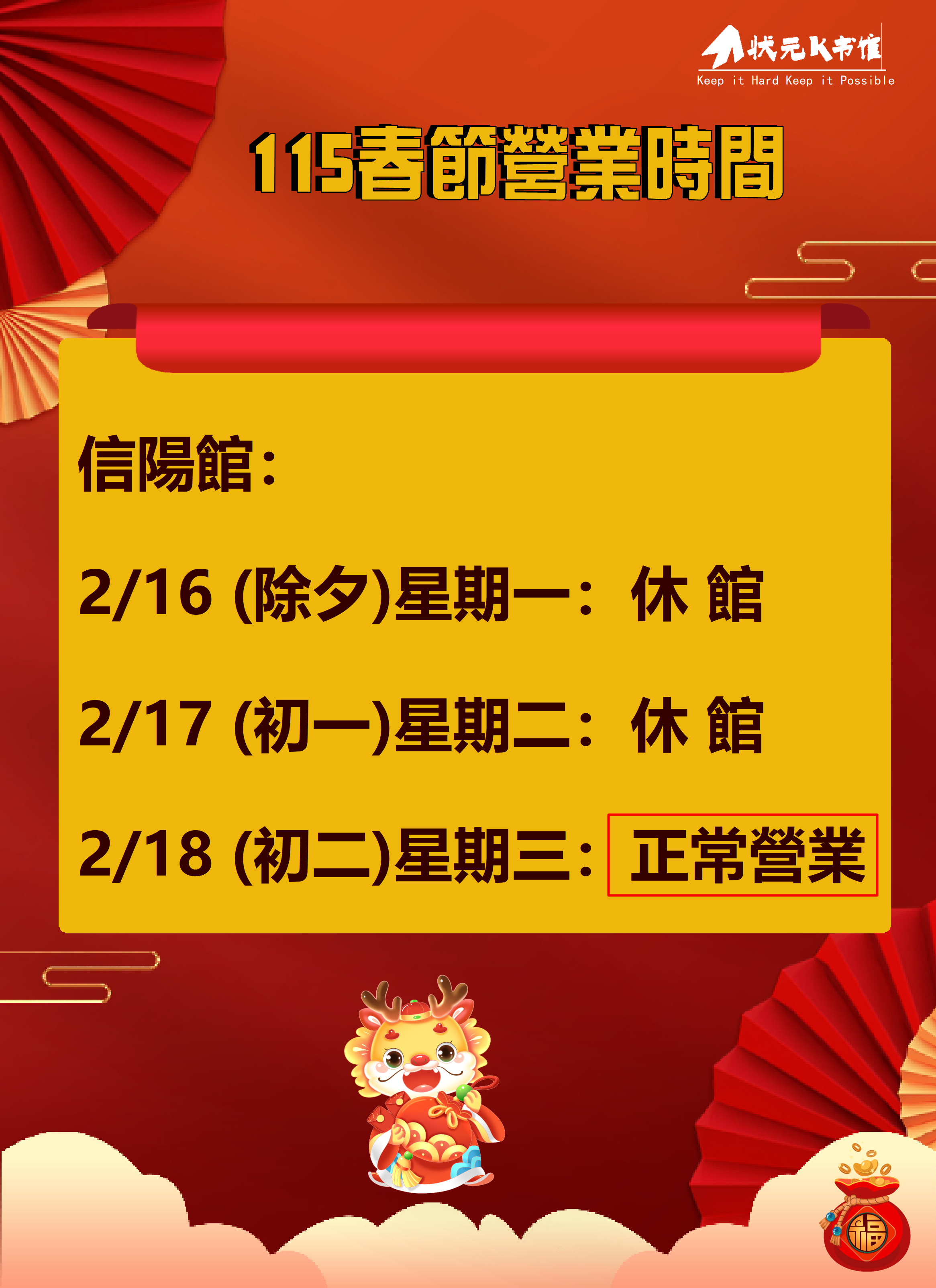 【通知】115春節開放時間